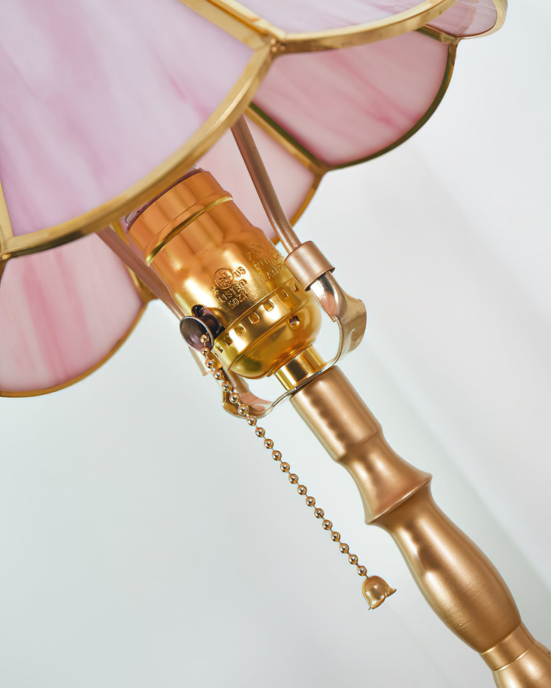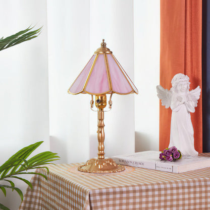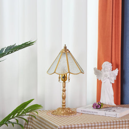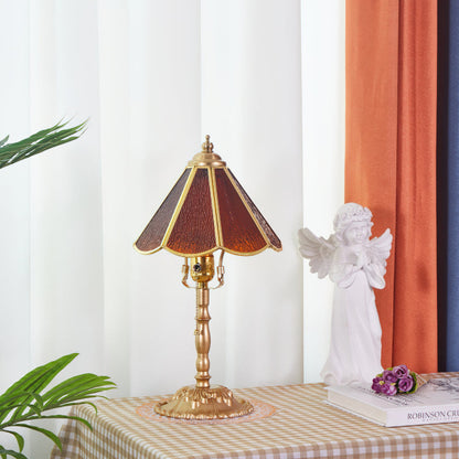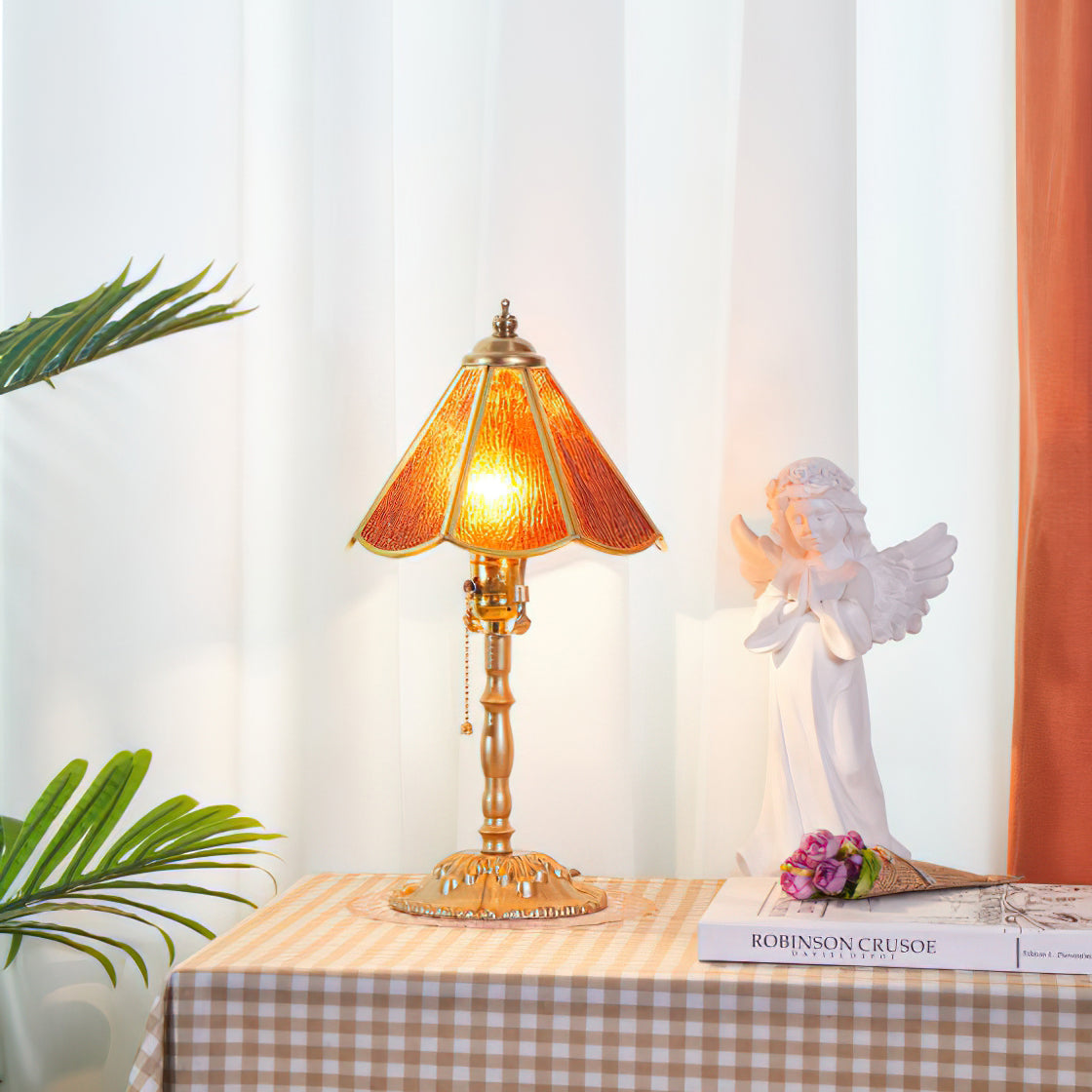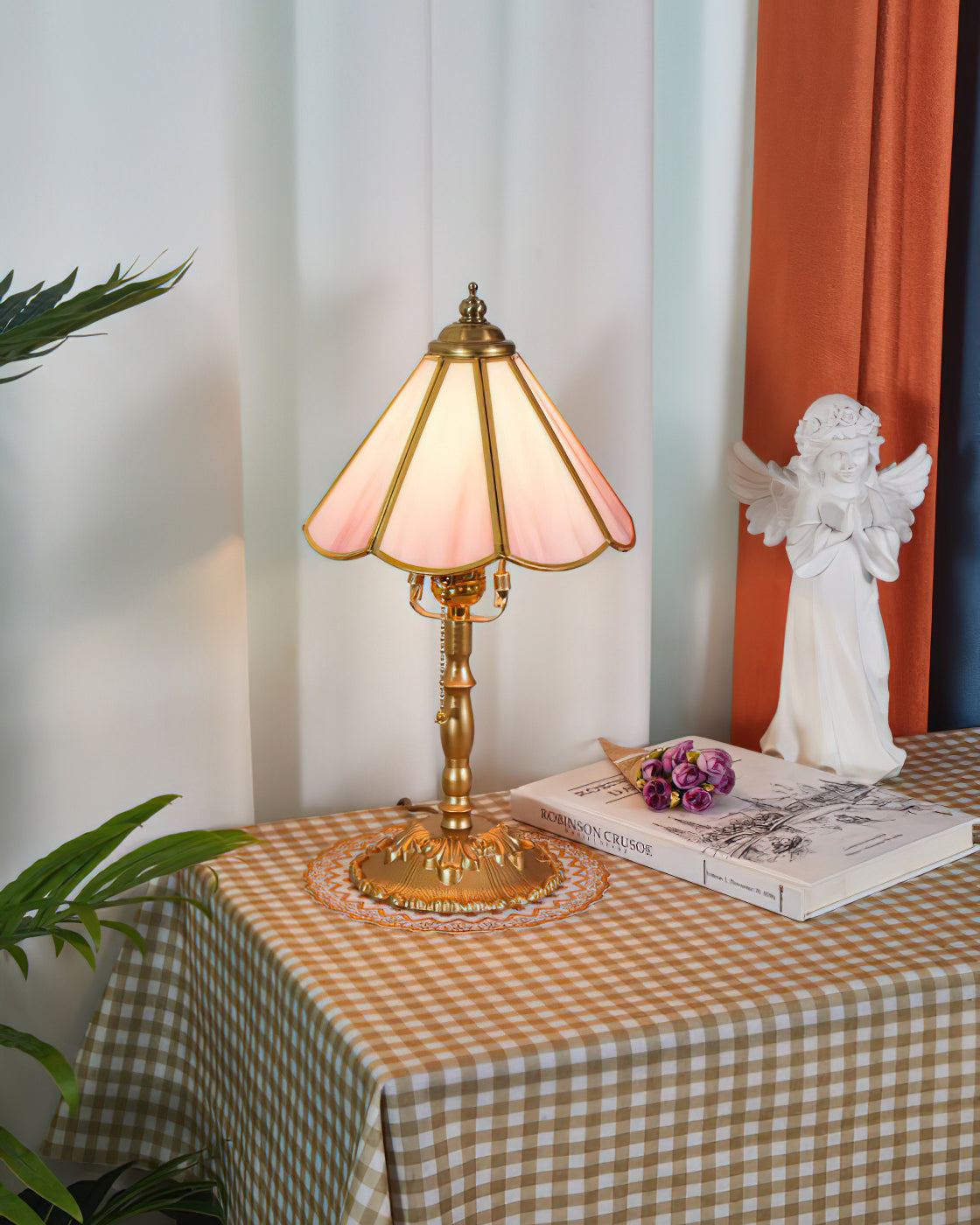 The Leslie Table Lamp combines a stunning vintage design with modern functionality. Crafted from glass and metal, it provides a warm glow, making it an ideal choice for both ambient lighting and decorative purposes.